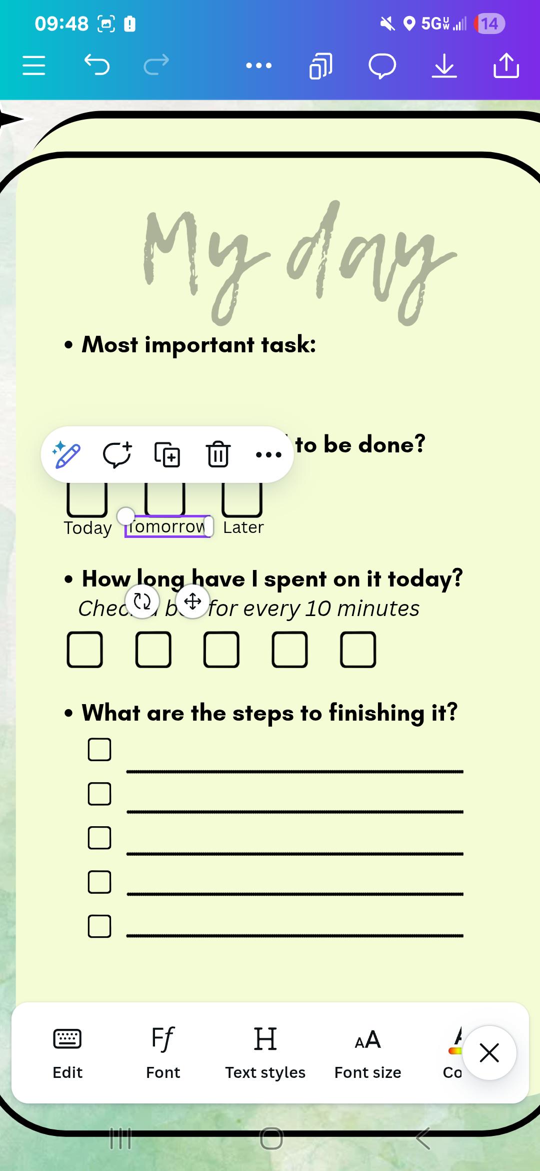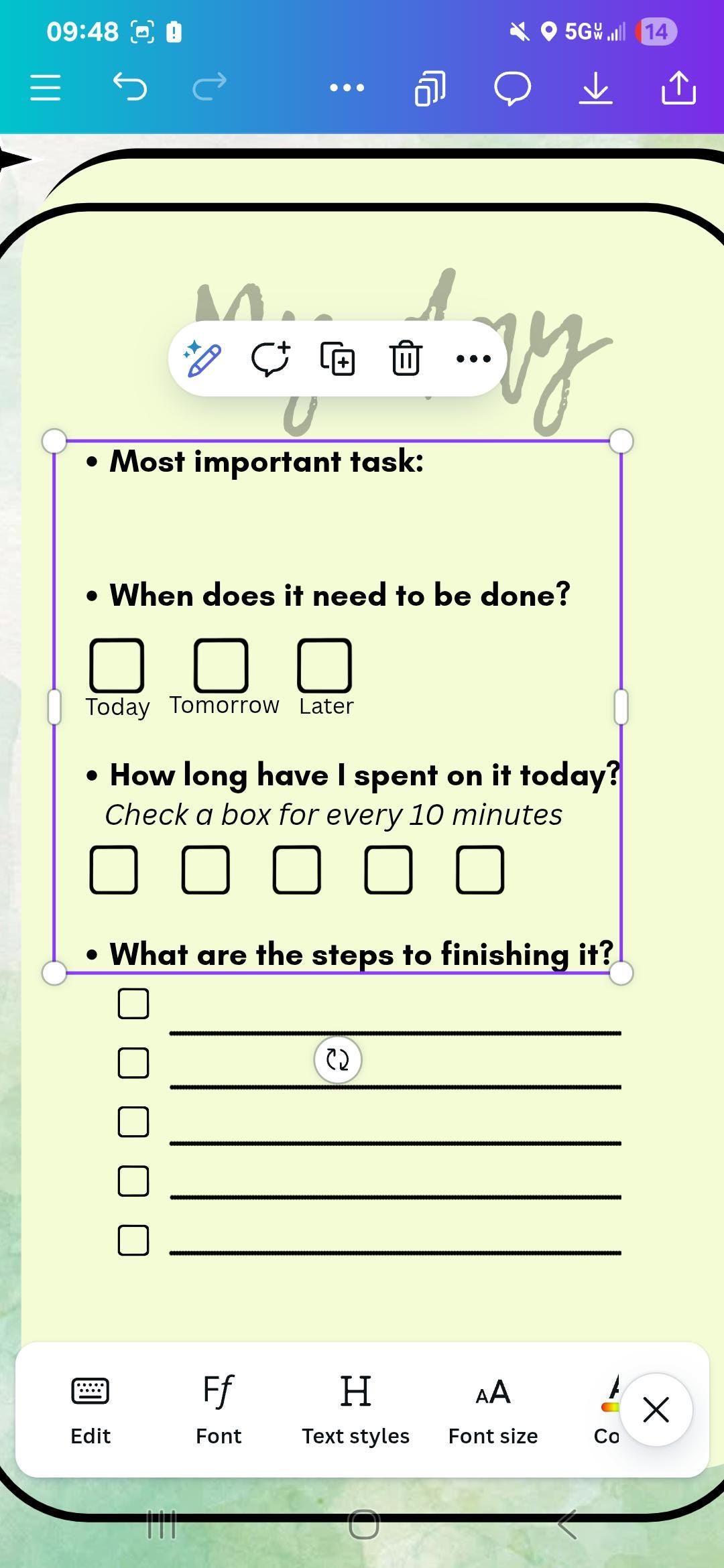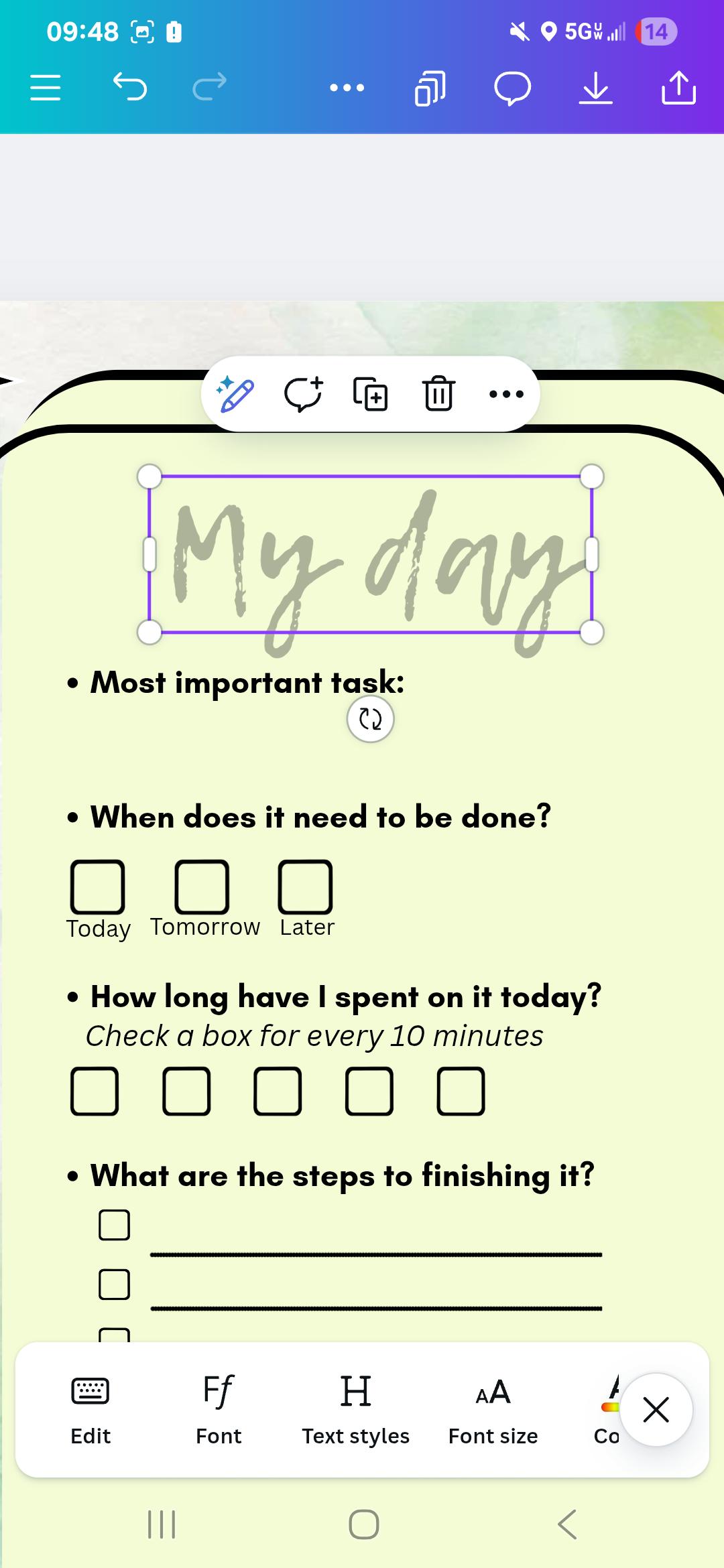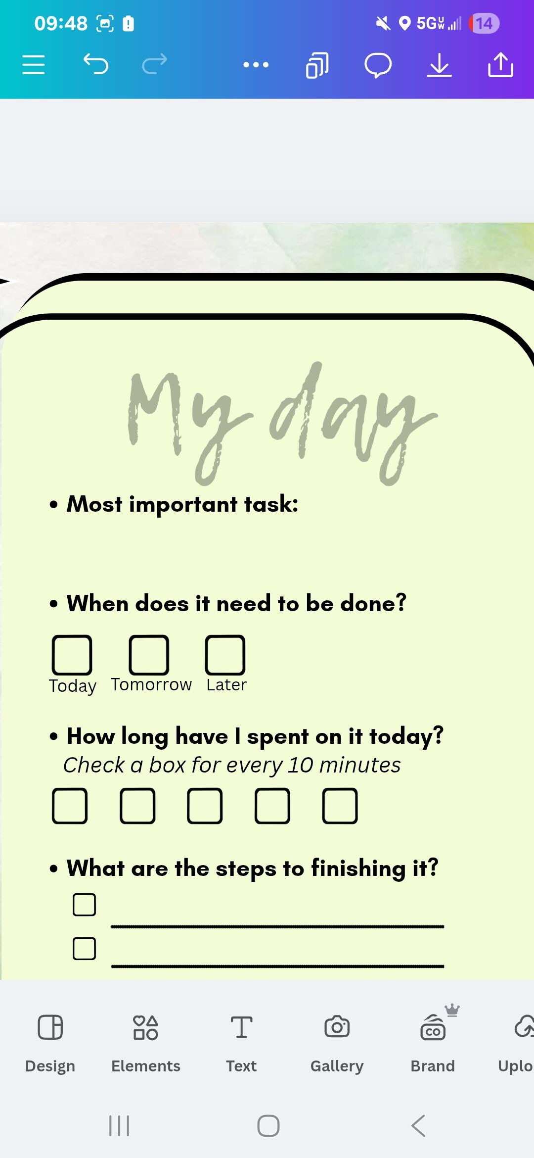 ADHD Friendly Canva Daily Planner Template digital template. Daily productivity tracker template in an ADHD Friendly format helps you stay on track while engaging your brain with bright colors and a simple tracking system.
