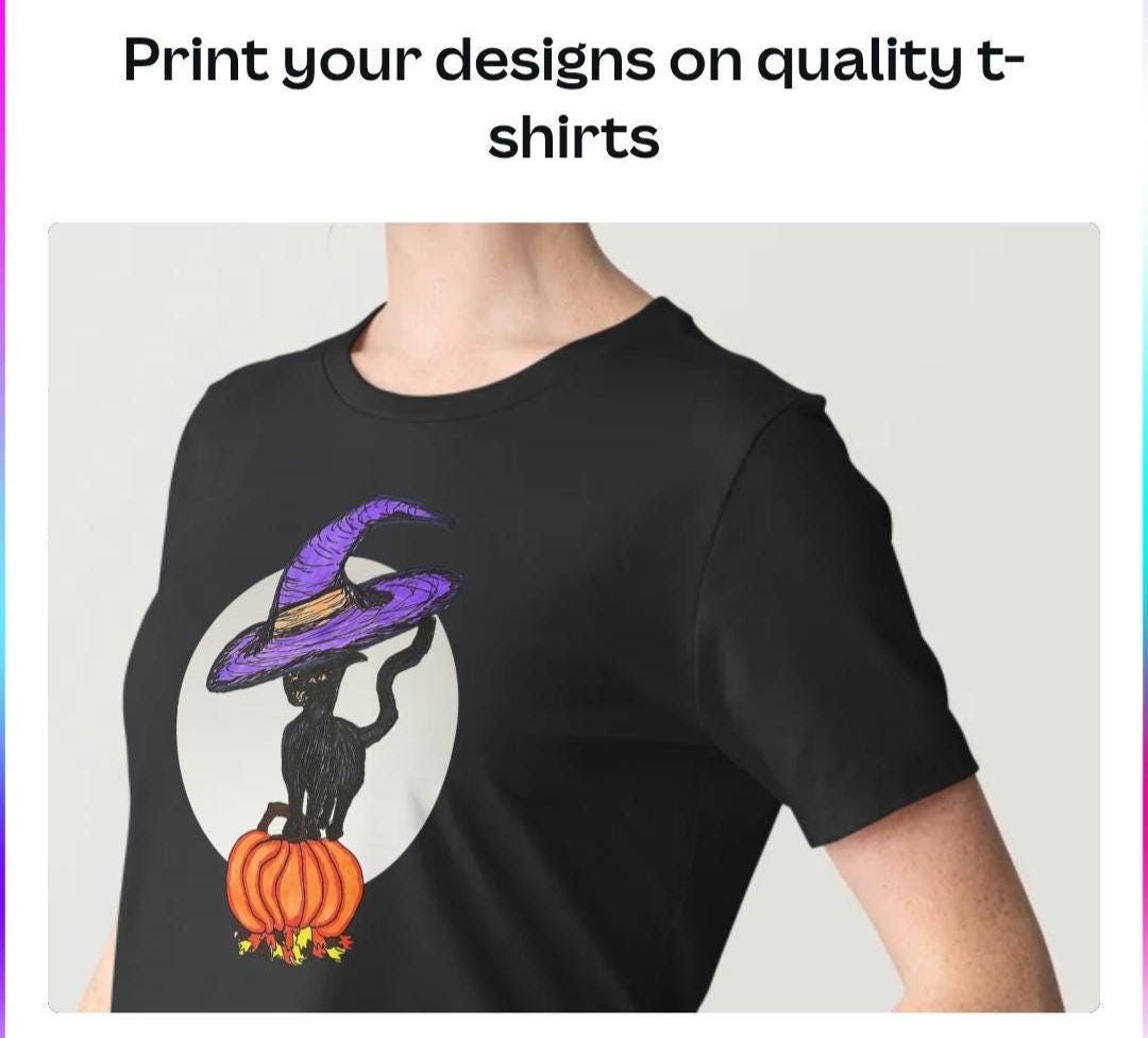 Halloween Cat Shirt Design Transparent PNG Digital Download. Purchase includes one PNG image file with the pictured design to be printed on t-shirts, mugs, or any other items. Spooky halloween design includes a witch cat on a pumpkin.