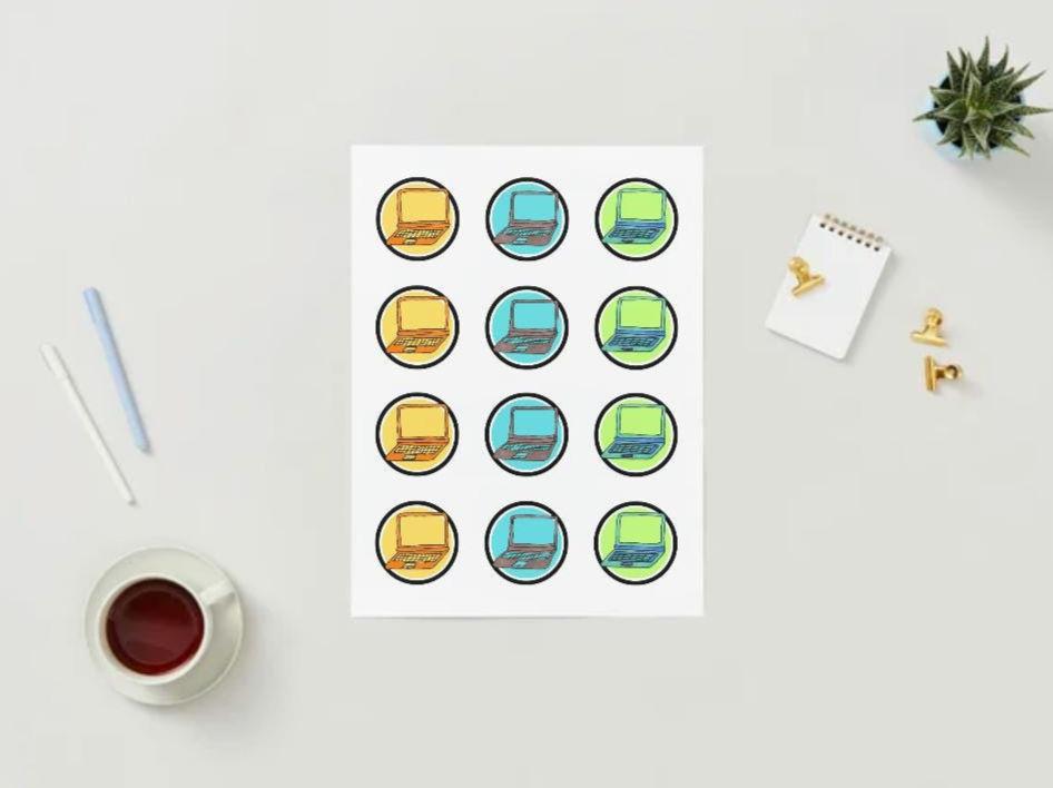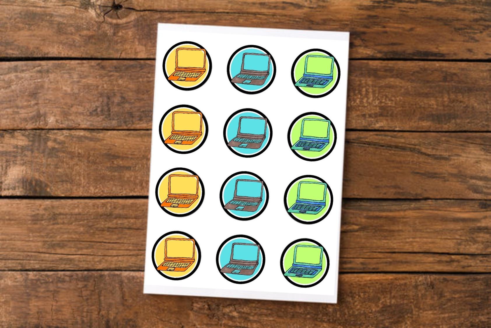 Laptop Planner Stickers Canva Sticker Sheet Template with 3 styles of hand drawn laptop designs. Printable digital design.