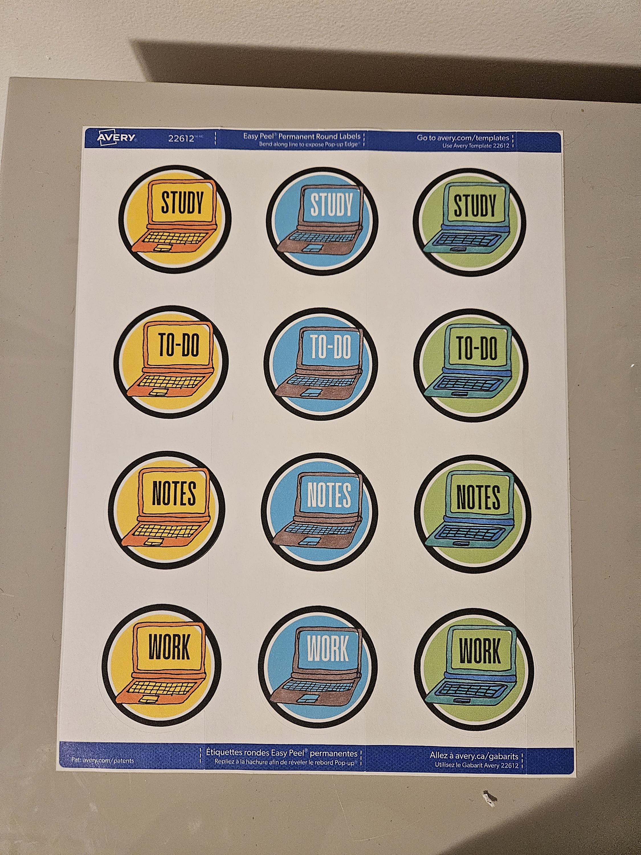 Laptop Planner Stickers Sticker Sheet including 12 different laptop label stickers for use in a Planner. Ships USPS Ground Advantage within the US, Priority International all other destinations.