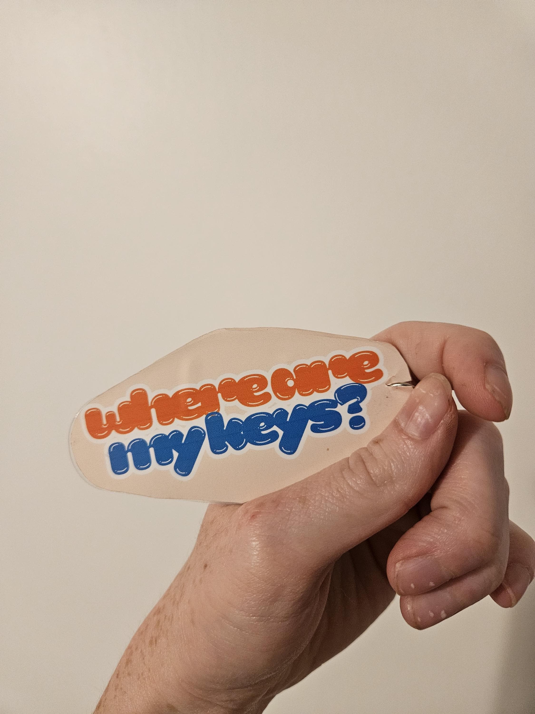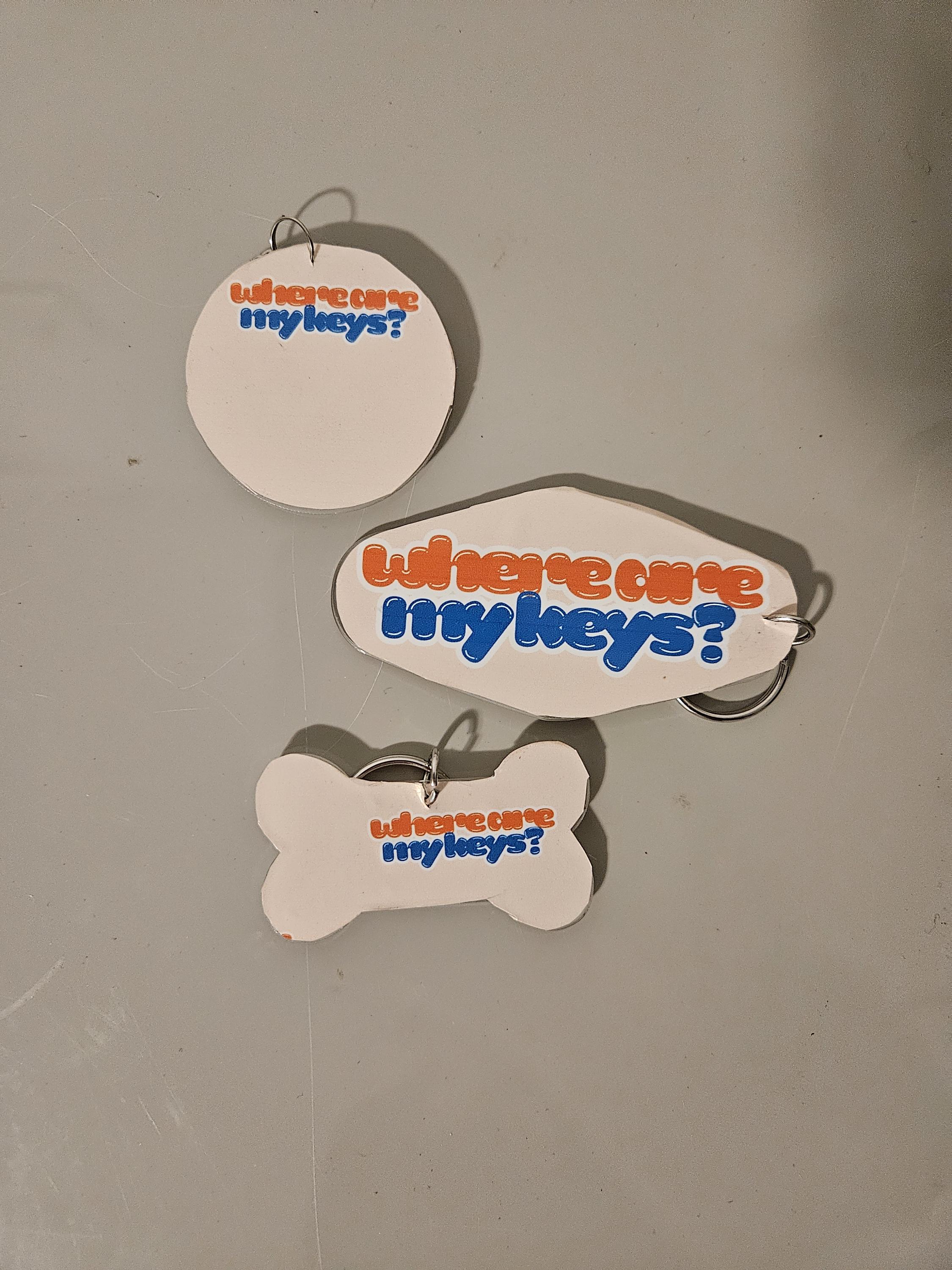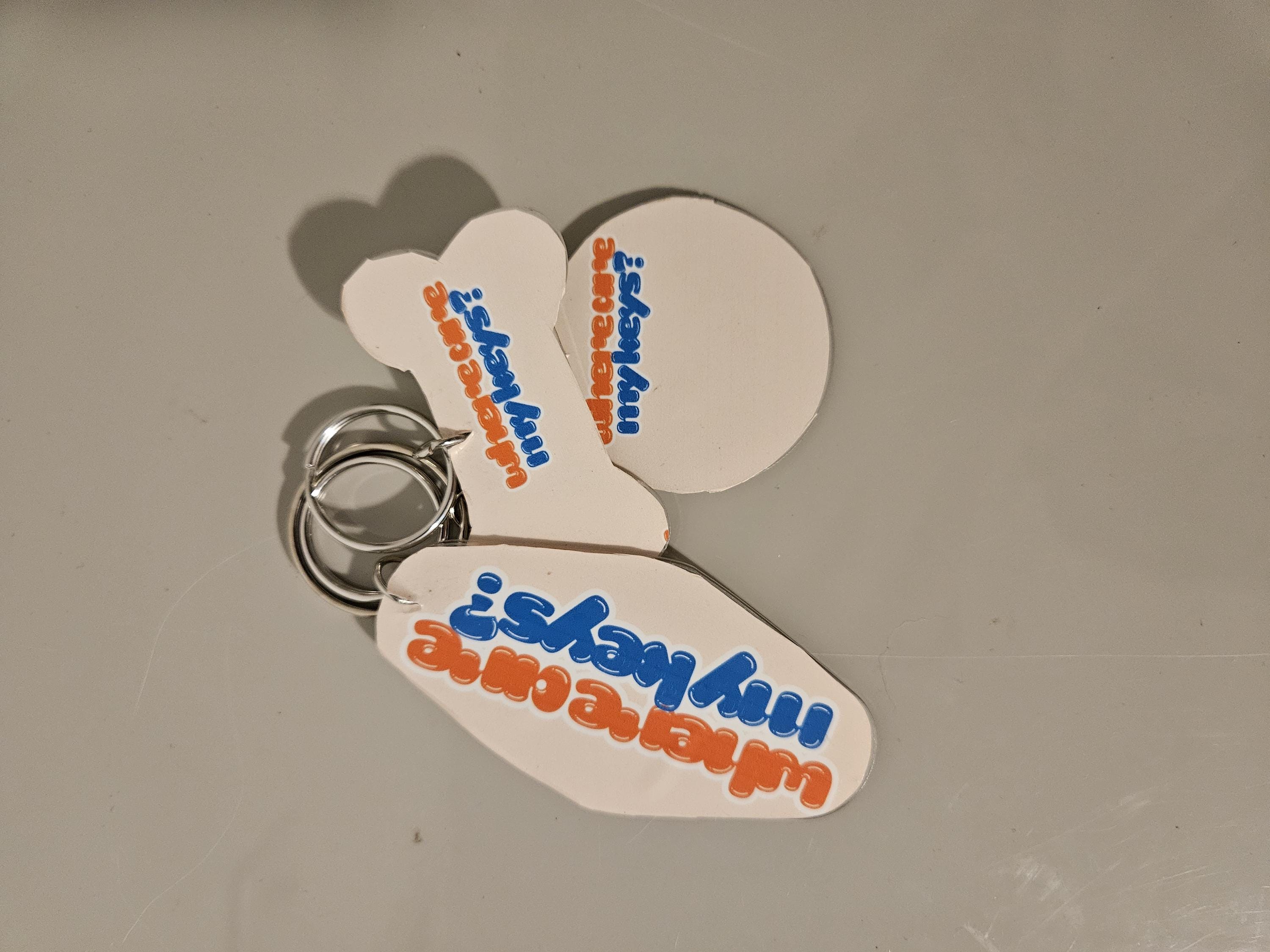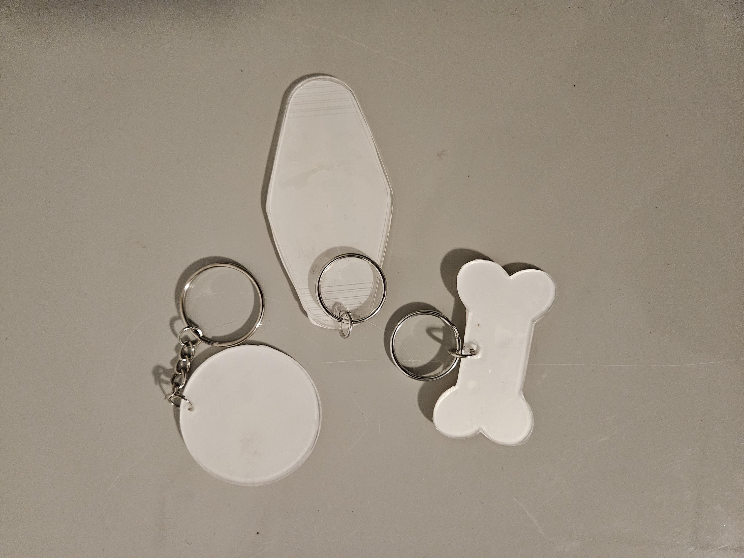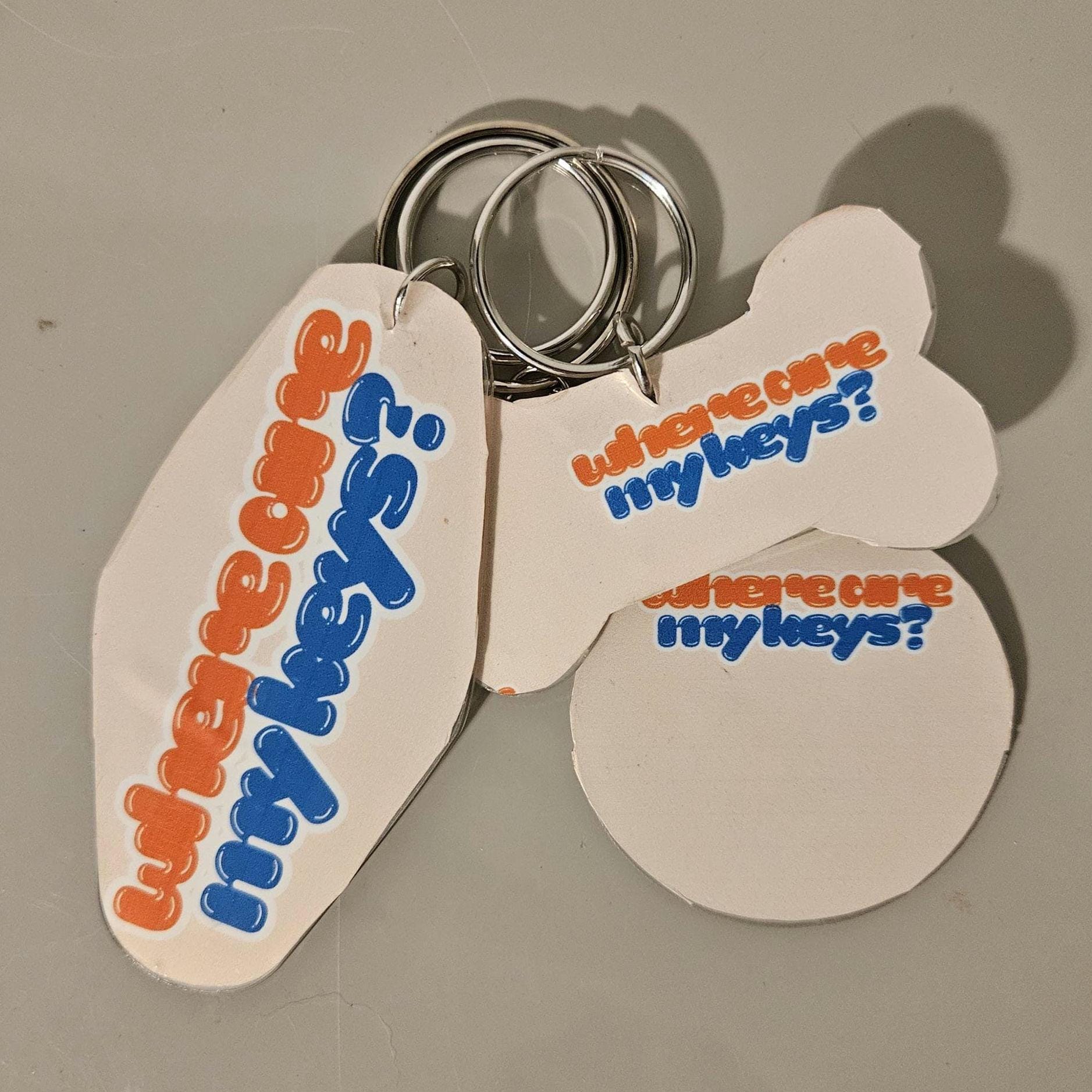 Custom Keychain in Dog Tag, Circular, or Motel Style. ONE OR TWO SIDED OPTIONS.Made from acrylic keychain base, custom designs are printed on vinyl stickers and added to the keychain by hand.