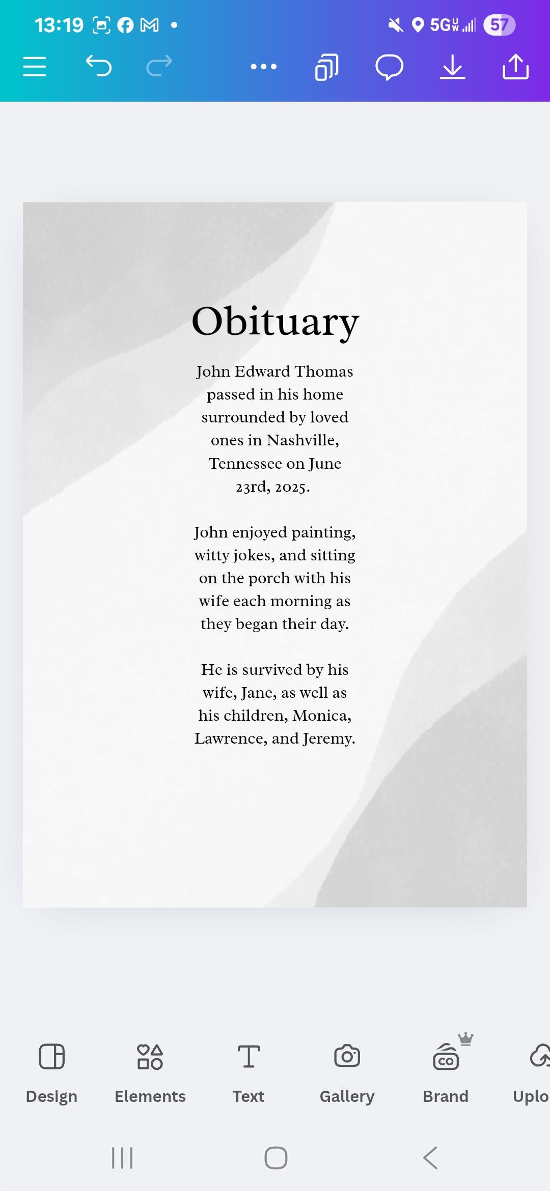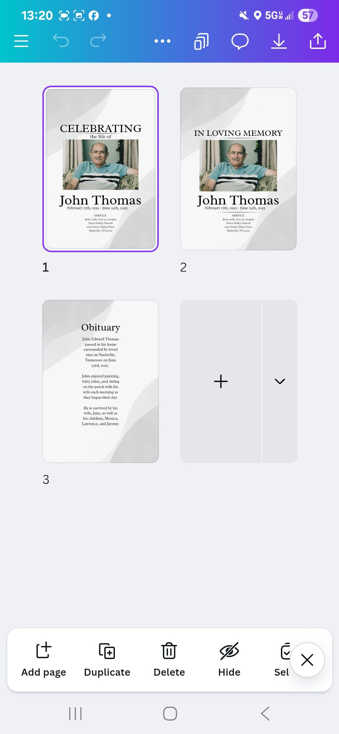 Obituary template in Canva. Editable funeral program or card template with Obituary and cover. Two style options for cover. All completely customizable and editable. Minimalist design.