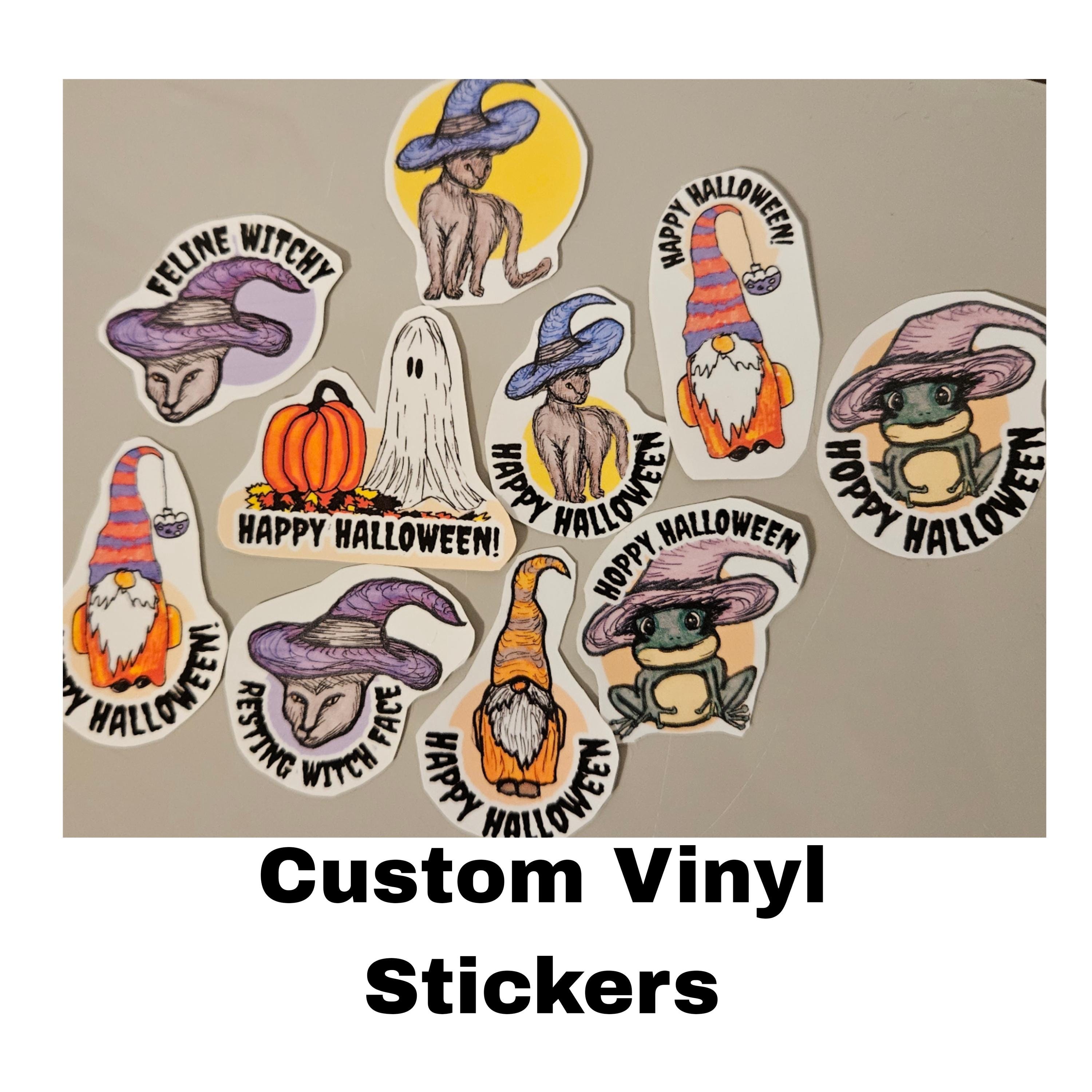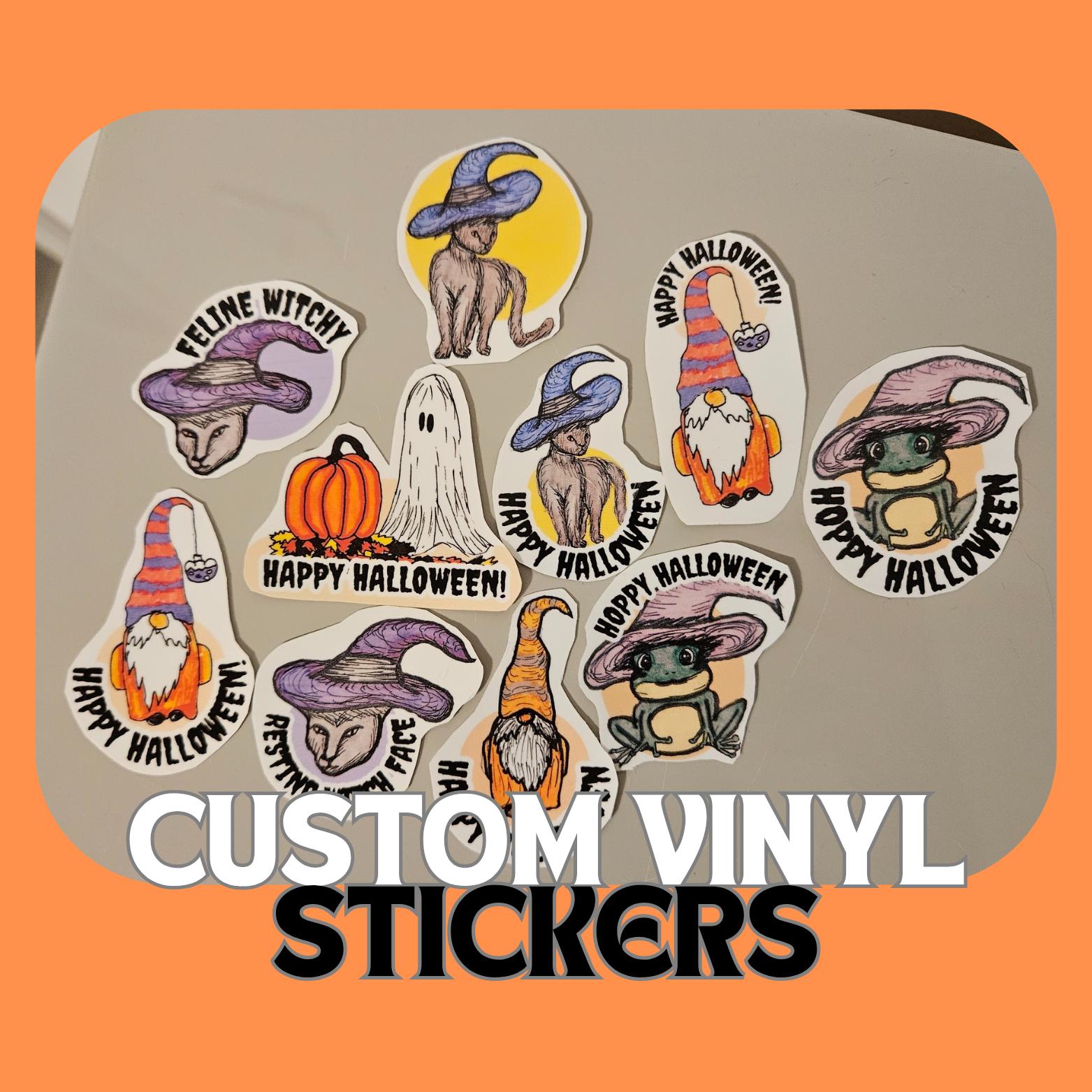 Custom Vinyl Stickers with options for custom or provided designs. Please provide any designs in png format. Custom designs are priced accounting for design and print time, whereas provided designs are priced assuming they will only need to be formatted and printed.