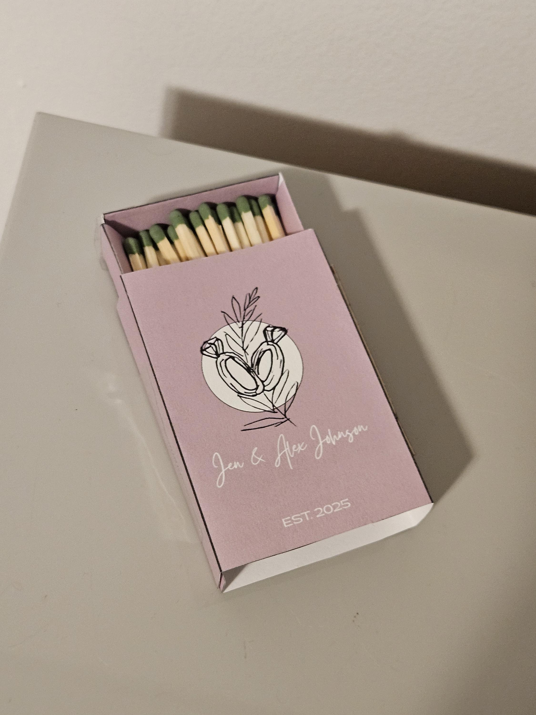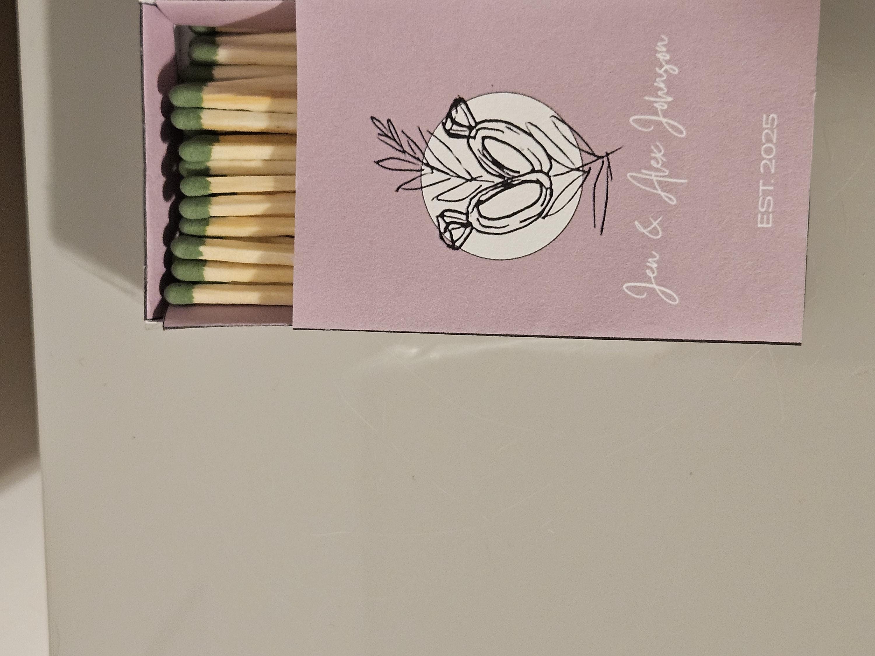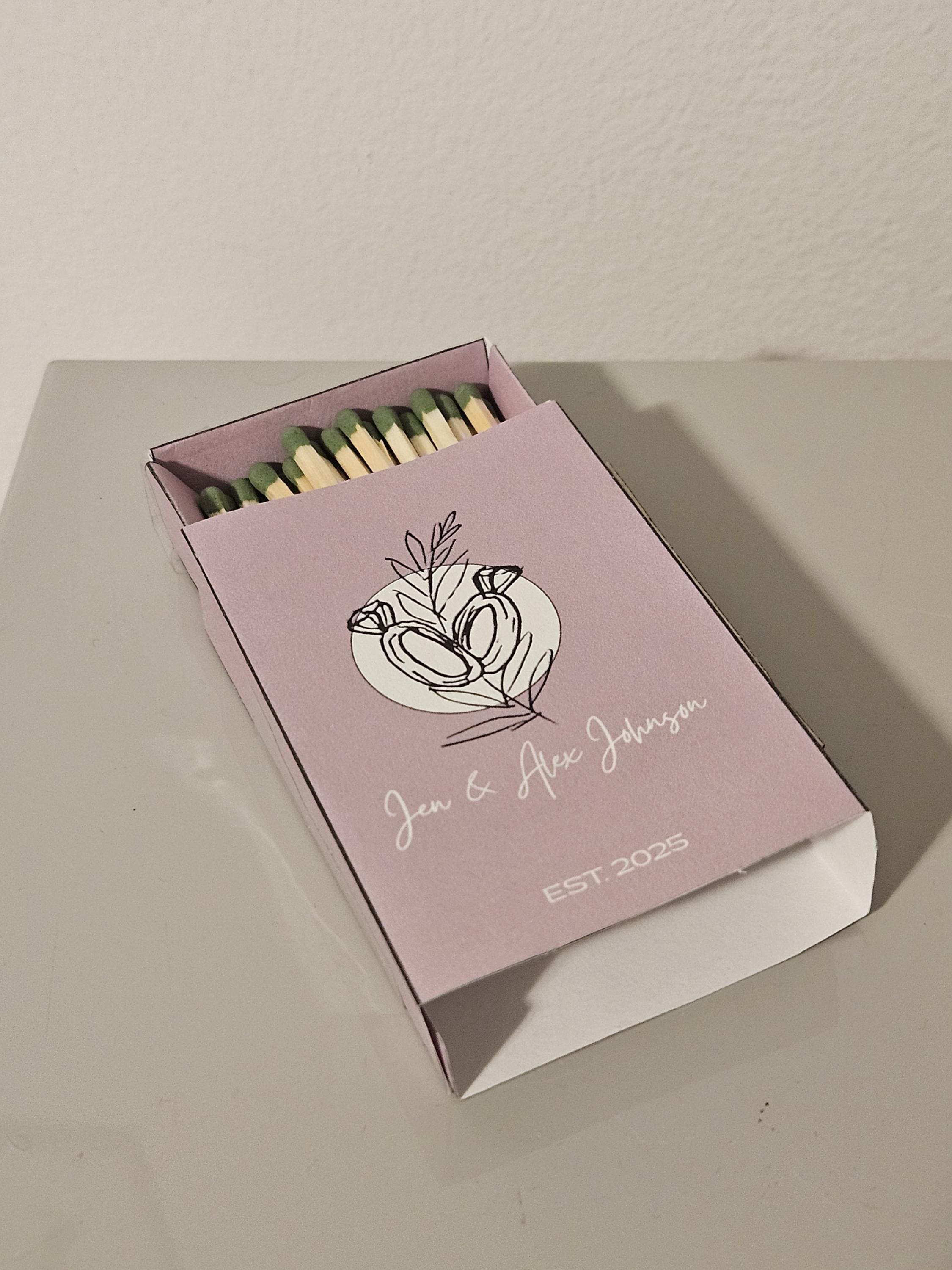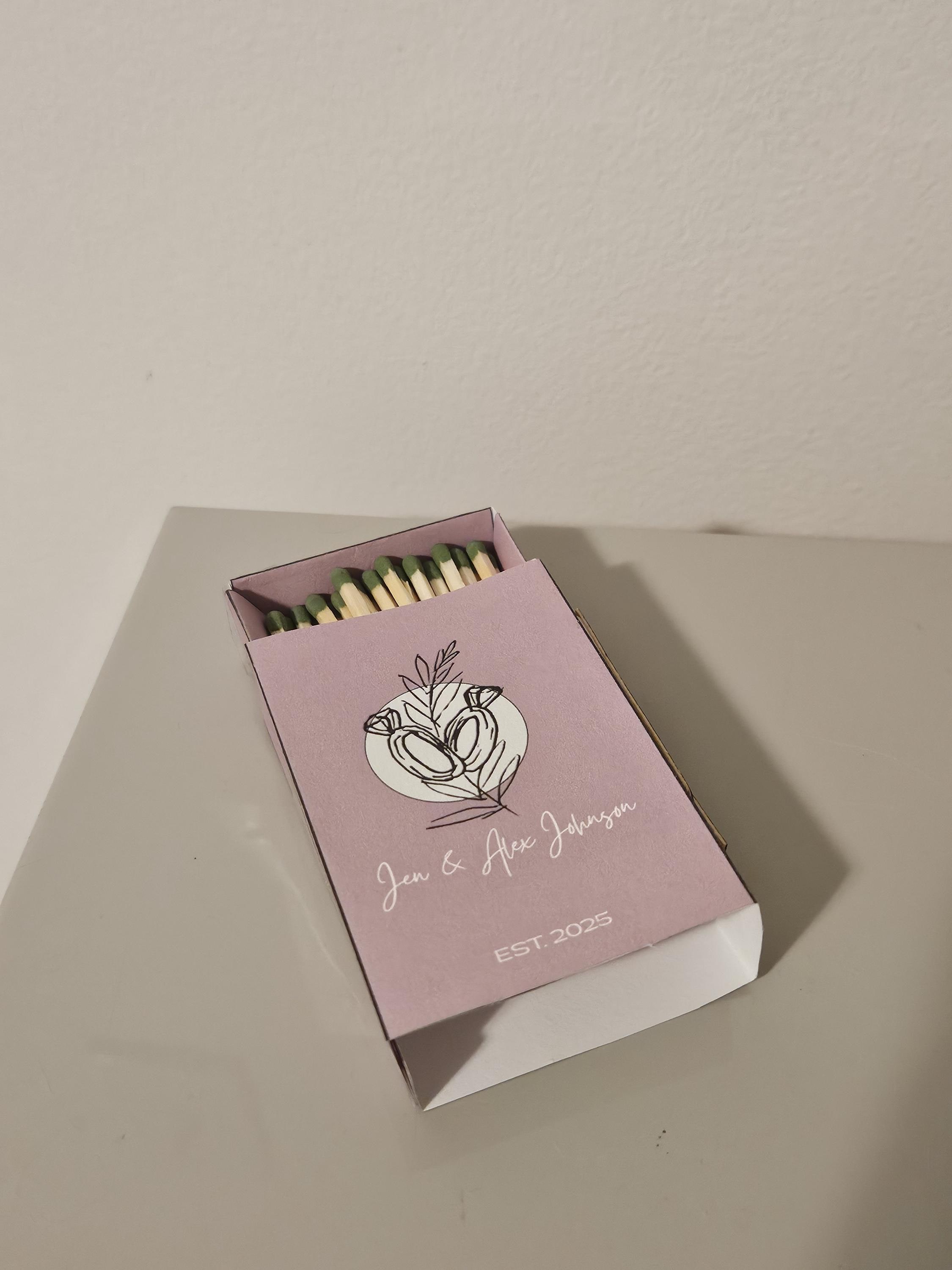Custom Matchbox Wedding Favor or Gift Party Favor with strike strip, matches, and custom design.After purchase, please specify:○ Design○ Text (if wedding, names and year of wedding)○ Any other details you'd like to add