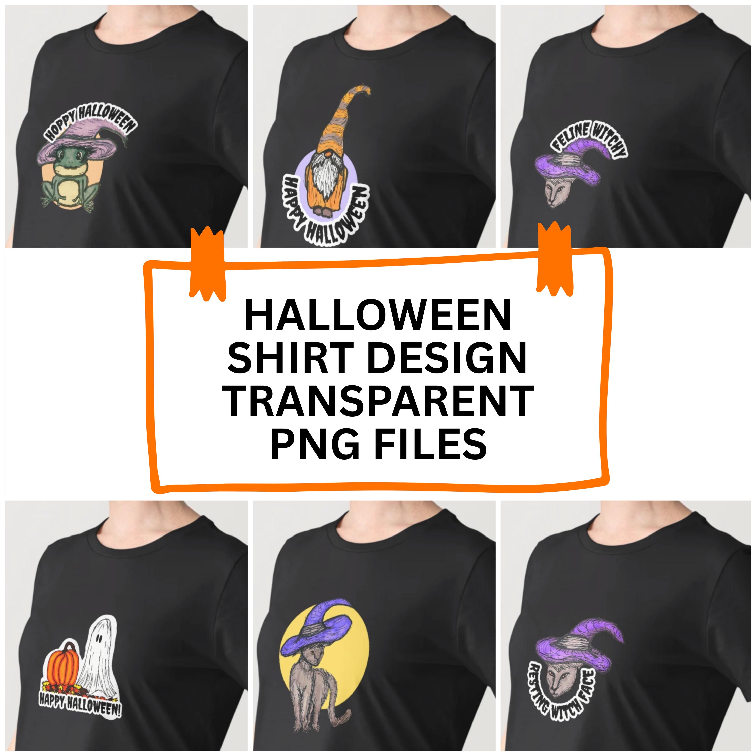 Halloween Shirt PNG Bundle 6 Transparent Image Files for T-Shirt, Sweater, Mug Gifts Witch Cat, Witch Frog, Halloween Gnome, Ghost