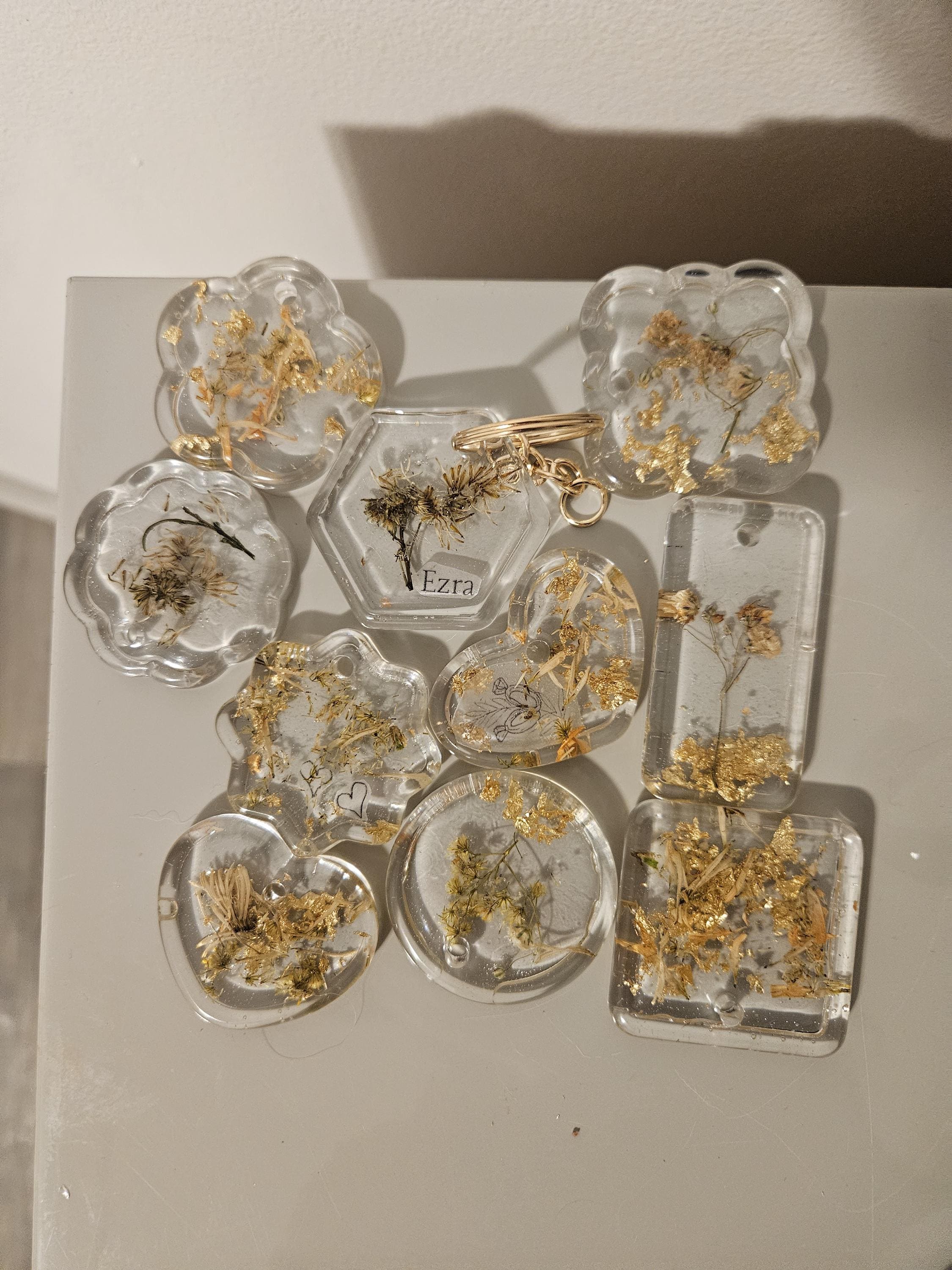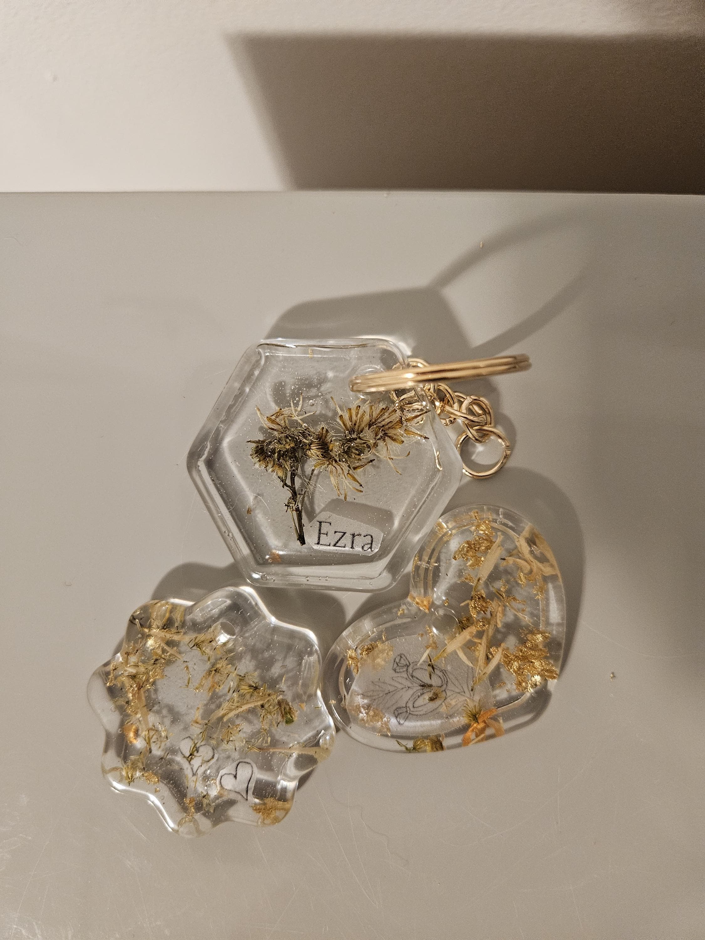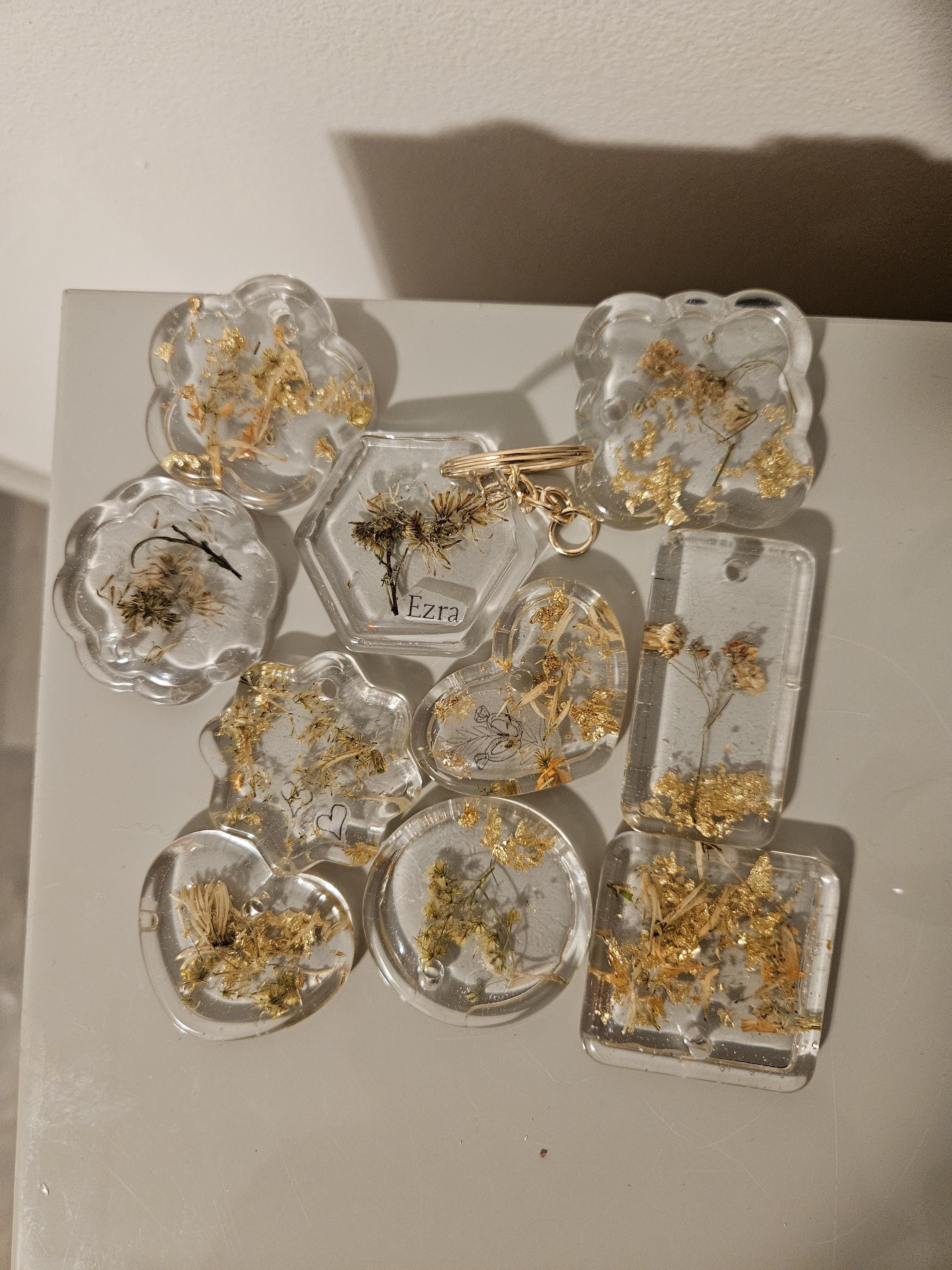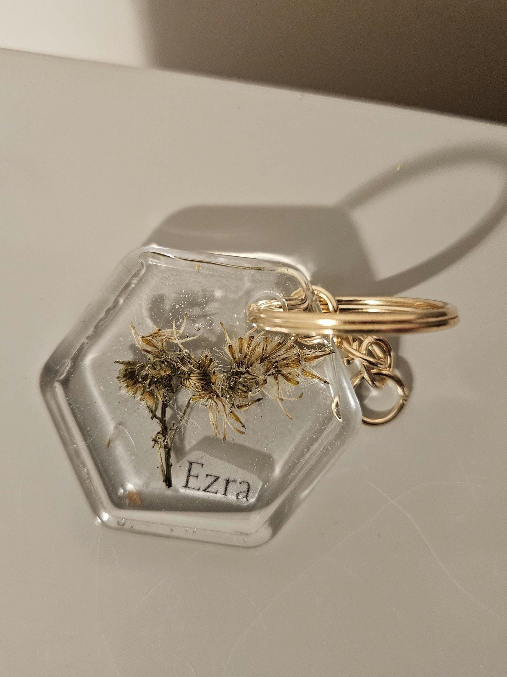 Custom Keychain Botanical Resin Custom Keychains Personalized with Name, Icon, Gold FoilOptional: Mica Powder (Coloring) and choose your own flowers.