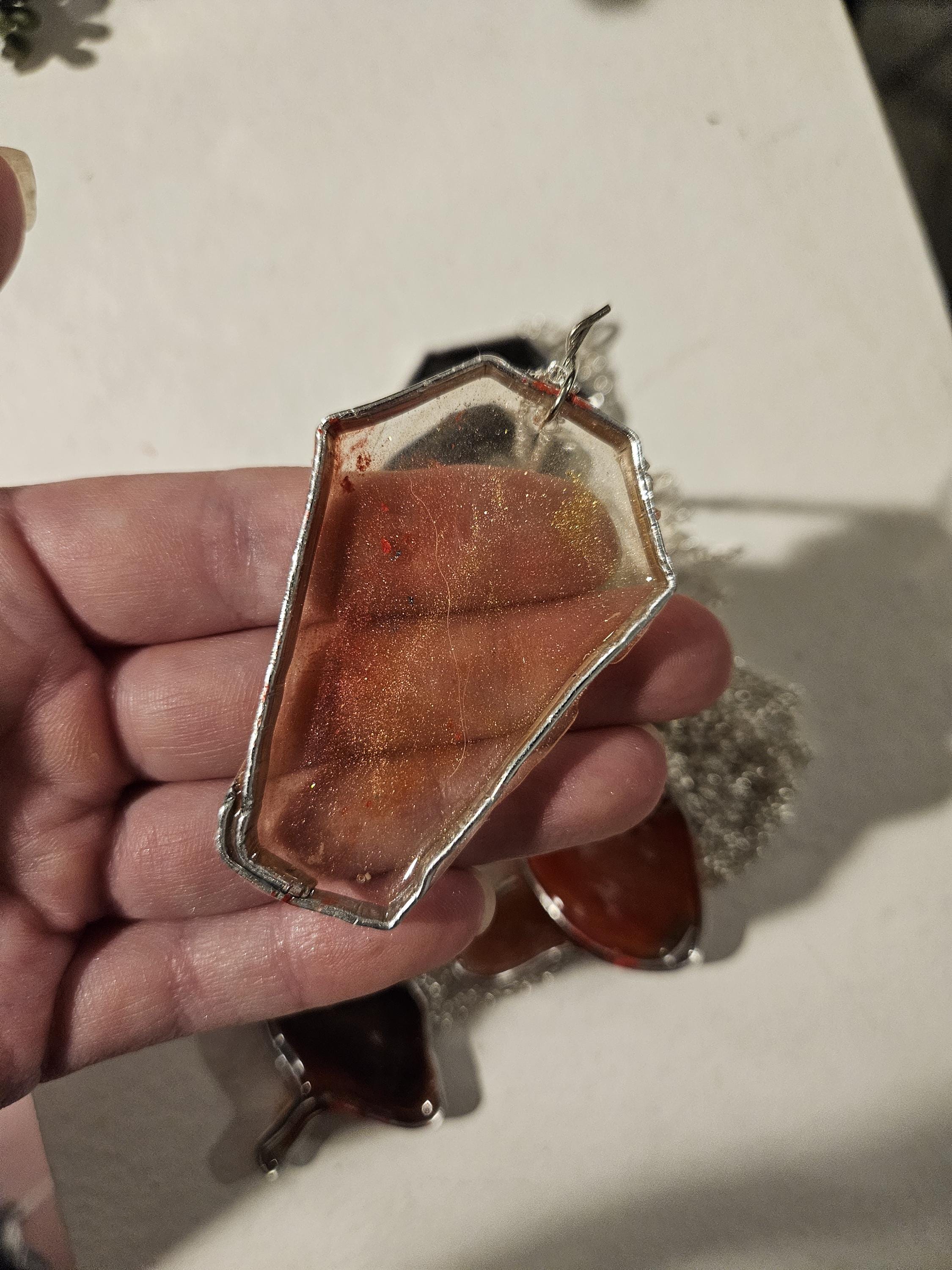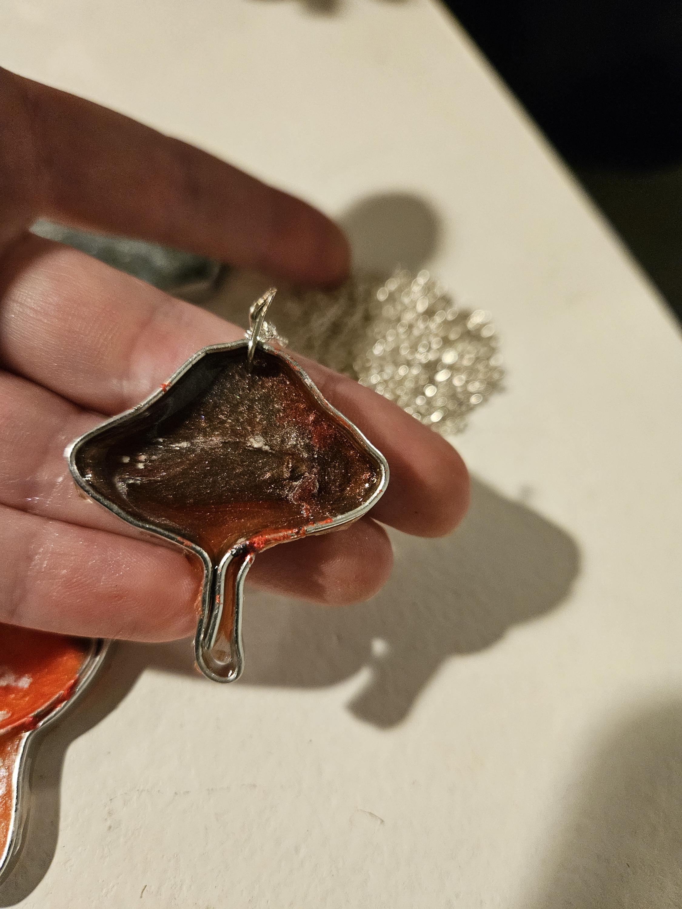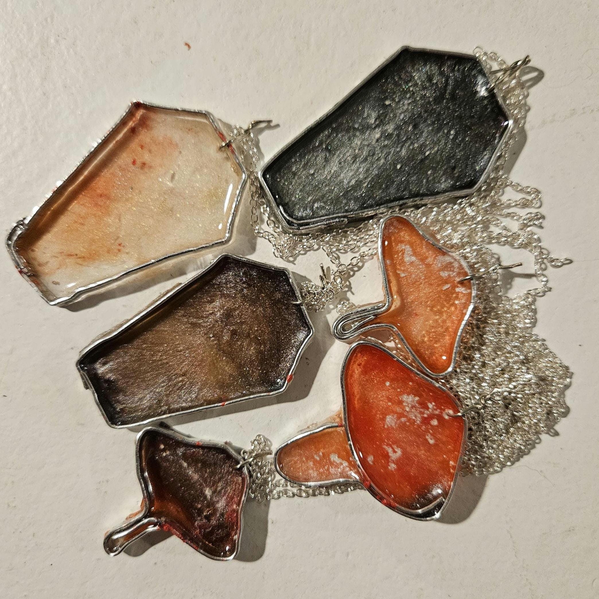 Custom Halloween Necklaces Coffin & Mushroom Charms Handmade Jewelry Comes in custom colors & shapes. Each bezel is handmade and made to Order, so it may vary slightly from those pictured.