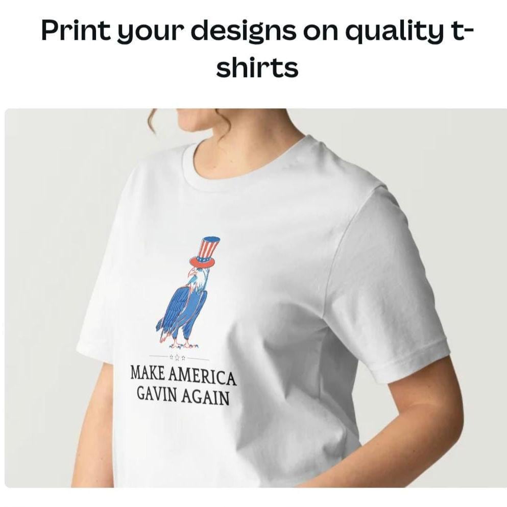 Make America Gavin Again Parody Shirt PNG Design Image Transparent Digital File *Listing is for design image file to be used to make shirts, not for a shirt.